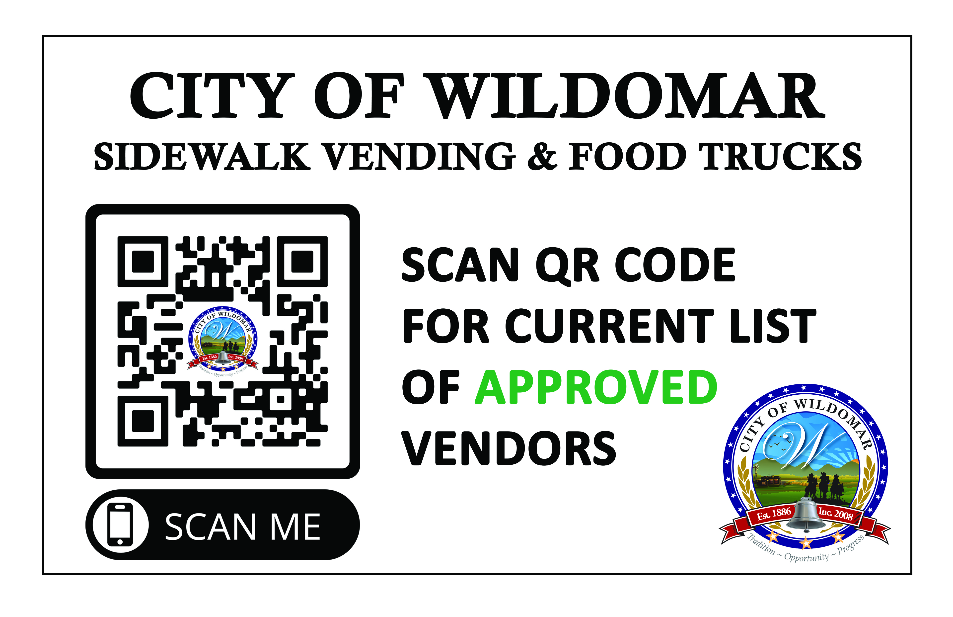 We are asking Sidewalk Vendors and Food Trucks to also display the attached certificate so that customers can scan the QR Code to easily access the list of approved vendors.